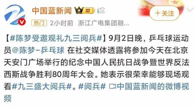 陈梦,作为2020年东京奥运会和2024年巴黎奥运会两届女单奥运金牌额获得者,也是现役运动员中唯一实现奥运女单连冠的选手,与邓亚萍、张怡宁并列成为中国乒坛奥运传奇三角。特别是在巴黎奥运会女单决赛中,在外界并不看好甚至现场环境并不友好的情况下,陈梦凭借荣辱不惊的心态和稳健的技战术发挥蝉联奥运女单金牌,让人刮目相看。此番受邀参加胜利日大阅兵,也是在情理之中。
