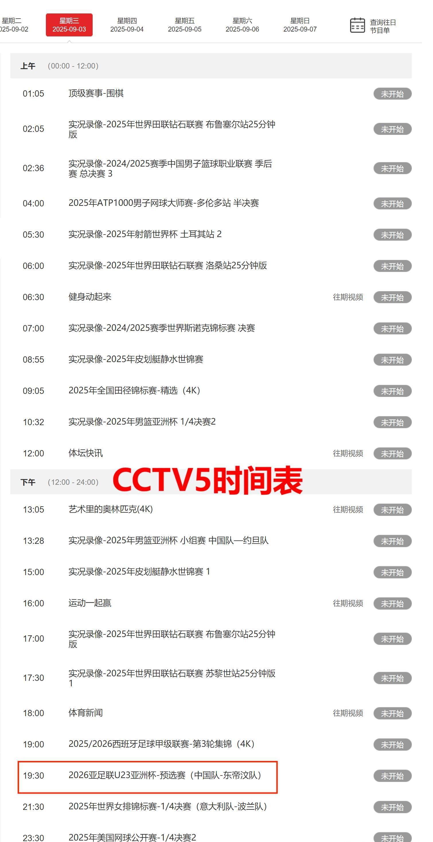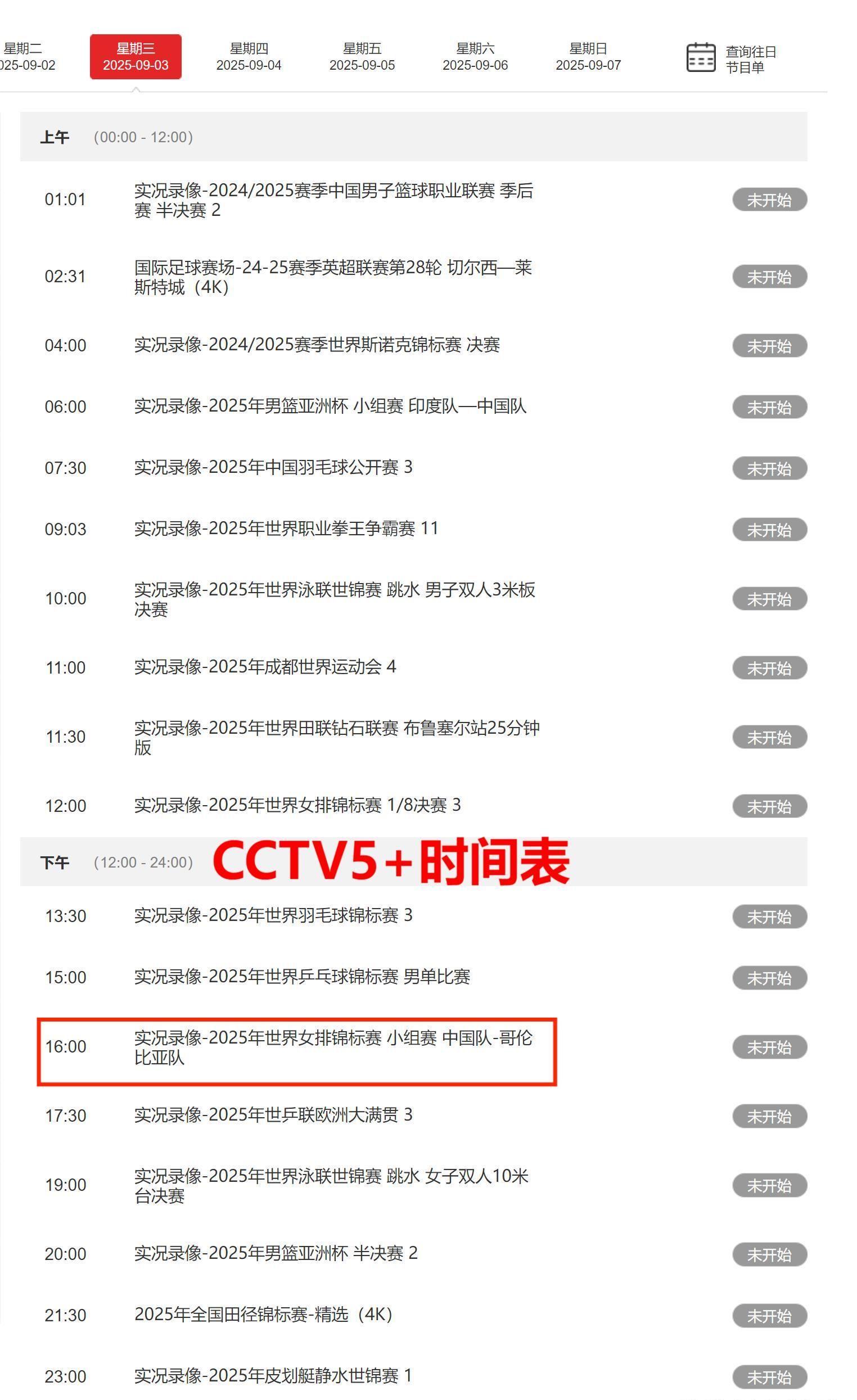 央视体育频道CCTV5、CCTV5+的节目表也重磅来袭!