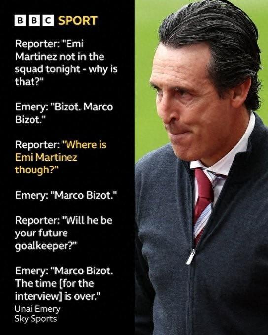 记者:“埃米-马丁内斯今晚不在名单里——这是为什么?”